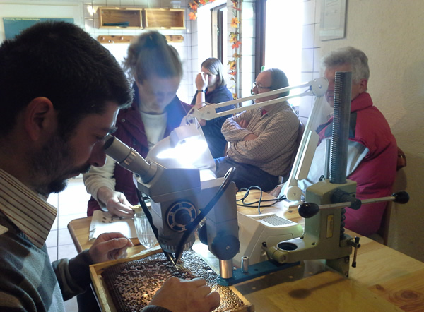 -numararea acarienilor pe un esantion de albine(prin metoda spalarii cu detergent de vase sau zahar pudra)